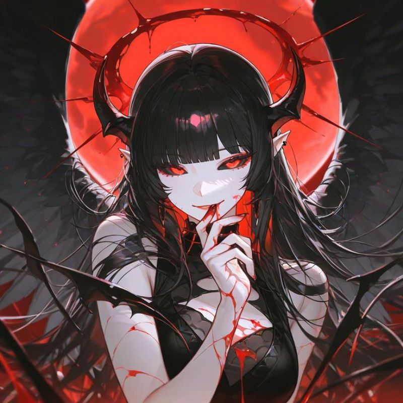 Ảnh anime ác quỷ nữ cá tính mang đến hình ảnh những cô gái sở hữu phong cách mạnh mẽ, lạnh lùng và đầy bí ẩn. Các nhân vật thường được khắc họa với ánh mắt sắc lạnh, trang phục tối màu cùng đôi cánh hoặc cặp sừng đặc trưng của ác quỷ. Tất cả tạo nên một phong cách cá tính, mạnh mẽ và cuốn hút, khiến người xem khó rời mắt.