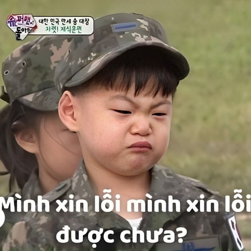 Không phải lúc nào xin lỗi cũng cần quá nghiêm túc, đôi khi sự hài hước mới là “gia vị” giúp tình huống bớt căng thẳng. Meme chế với những câu chữ dí dỏm, hình ảnh nhân vật đời thường hoặc khoảnh khắc bất ngờ trong showbiz sẽ khiến lời xin lỗi thêm phần thú vị.