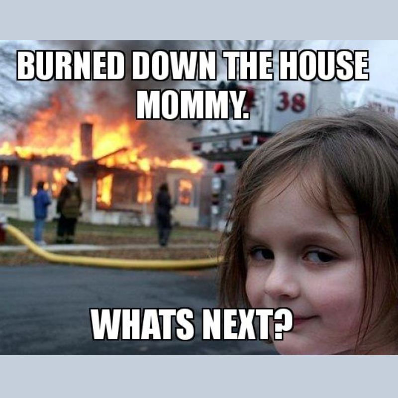 Ngoài ra, meme này còn được dùng để minh họa cho những “thảm họa đời thường” như làm hỏng bài tập nhóm, gây lỗi hệ thống hoặc làm cháy đồ ăn. Chính sự sáng tạo này đã giúp Disaster girl lan truyền rộng rãi trên Internet.