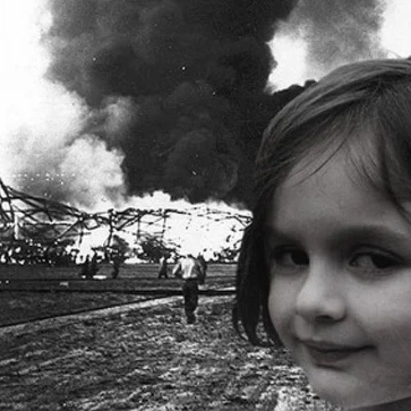 Sự đối lập giữa khung cảnh “thảm họa” và nụ cười bình thản của cô bé đã tạo nên một trong những meme hài hước và độc đáo nhất trên Internet. Hình ảnh này thường được sử dụng để minh họa cho những tình huống trớ trêu, khi ai đó vô tình hoặc cố ý gây ra rắc rối.