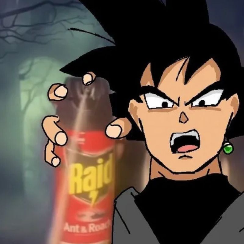 Meme Goku cầm chai xịt côn trùng