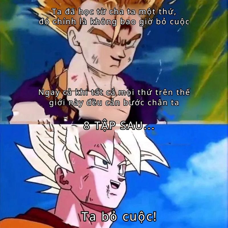 Ảnh ghép hài hước khoảnh khắc Goku bỏ cuộc