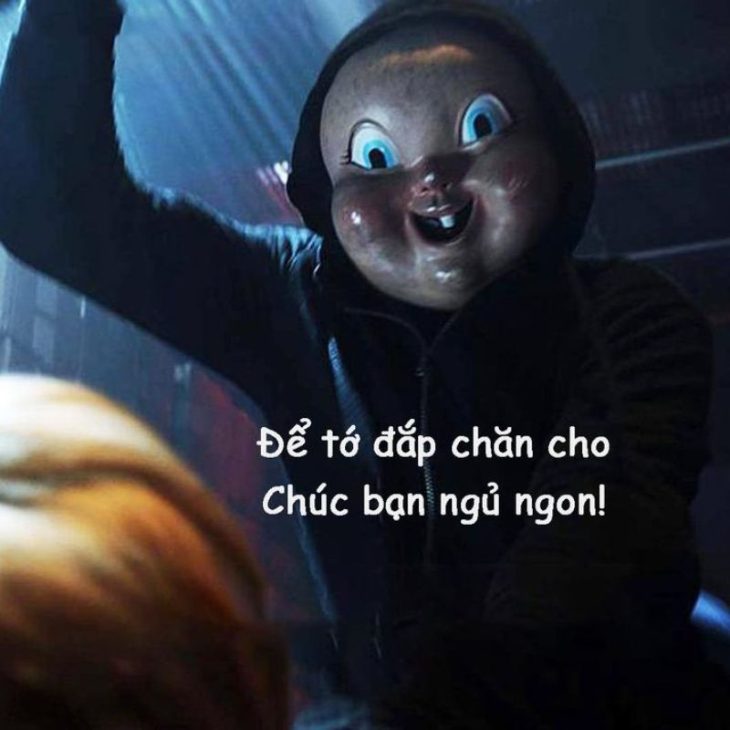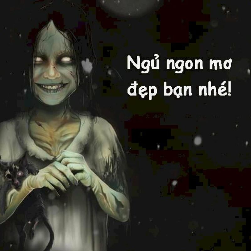 Meme chúc ngủ ngon dọa ma là kiểu chúc ngủ không giống ai nhưng lại siêu hài, siêu viral. Dạng meme này thường sử dụng hình ma quỷ, khuôn mặt hù dọa hoặc bối cảnh tối om nhưng caption lại trái ngược hoàn toàn như “ngủ ngon nha, tao đứng ngoài cửa nè”, “nhắm mắt lại đi, có tao canh giấc”.