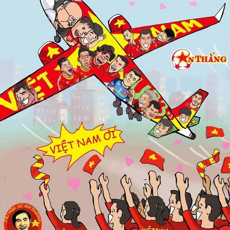 Tinh thần dân tộc và niềm đam mê thể thao cuồng nhiệt của người Việt Nam luôn được thể hiện mạnh mẽ nhất qua những đợt “bão” mạng xã hội mỗi khi đội tuyển thi đấu. Người hâm mộ bóng đá sử dụng meme như một công cụ giao tiếp đắc lực để tiếp lửa cho các cầu thủ từ xa và kết nối hàng triệu trái tim yêu nước. Những hình ảnh này thường mang sắc đỏ rực rỡ, lồng ghép các câu nói viral của bình luận viên hoặc biểu cảm “để đời” của các cầu thủ để tạo nên khí thế hừng hực.