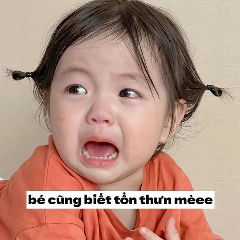 Meme em bé khóc đáng yêu
