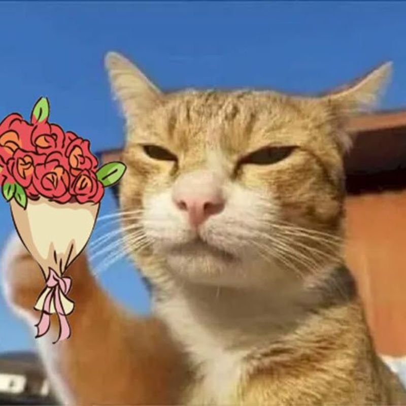 Meme mèo tặng hoa hài hước