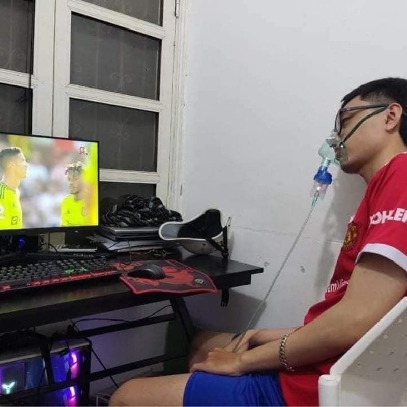Meme thở đeo bình thở oxy hài hước, lầy lội